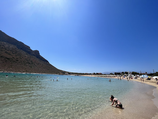 Read moreI really liked this beach. If you come early in the morning, there are hardly any people. Its a mostly sandy beach with some rocky areas, and an imposing, mostly barren mountain adjacent to it. Makes for great photos. There is a calm, shallow area ideal for kids, and some rocks for those who like to snorkel as small fish sometimes take refuge near the rocks. If you are looking for a beach with a lot of waves, big waves, or a lot of water sports, well this is not it. You can buy overpriced food and drinks of mediocre quality at the beach. There are also bathrooms if you need them. If you would like an umbrella and 2 chairs, it will cost you 20 Euro, which is criminal. Overall it's a nice beach close to Chania. Its less busy than the beach that is near the old Venetian harbor. Best to rent a car to explore the island and to get here. FYI, this is the place where the classic movie Zorba the...