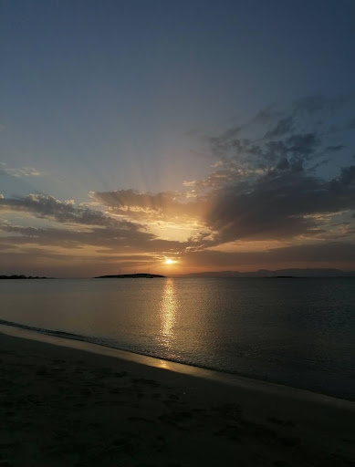 Great place. In August is less crowded than Simos beach. Cristal clear water. Tiny fishes are swimming around you. Now is connected with Simos Camping with a new road across the island...