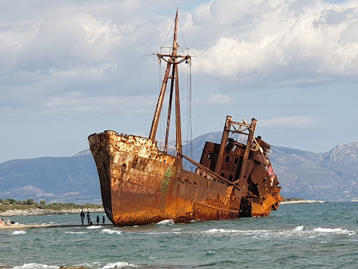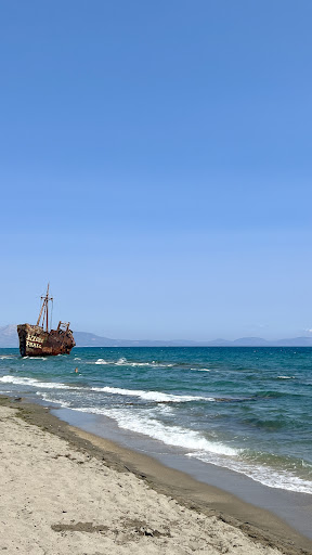 Read moreNicht nur das Wrack der Dimitrios hat sich diesen Strand ausgesucht. Kein Geheimtipp mehr aber wirklich prima Meer! Zum Baden muss man teilweise das Steinriff überwinden, Badeschuhe zu empfehlen. Besser ist es nahe der Taverne. Hinter dem Riff ist schöner Sandboden. Tolle Küste - wir kommen wieder! 2017, 2020 und 2022 haben wir super hier gebadet.