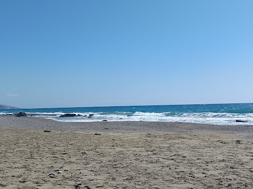 Read moreSuper schöner Strand, der offenbar wenig besucht wird. Warum auch immer. Und dabei ist das nicht einmal weit vom berühmten Matala Beach entfernt. Ein Fahrzeug braucht man allerdings, um dort hinzukommen. Es lohnt sich auf jeden Fall. Es gibt Infos (oder eher Gerüchte) dass sich dort vielleicht ein militärisches Sperrgebiet befinden würde, aber das kann ich so nicht bestätigen. Dann müsste doch auf jeden Fall auch Schilder dazu geben, doch die habe ich nirgendwo gesehen. Es gibt zumindest auch feste Sonnenschirme aus Metall und Palmen am Strand (die aber wohl ausgemustert wurden), und sogar ein kleines Restaurant (was ich persönlich nicht so mochte, da der Besitzer unfreundlich ist), aber warum sollte sich all das denn nun in einem Sperrgebiet befinden? Das ergäbe keinen Sinn. Es gibt genügend Parkmöglichkeiten, einen ziemlich breiten Sandstrand (geht auch einige Kilometer in jede Richtung), Steine im Wasser und sogar kleinere Felsformationen. Das Wasser war (Anfang August) angenehm warm und sehr sauber, allerdings ist es auch oft sehr windig dort, was zudem starken Wellengang auslöst. Mit dem Schwimmen selbst sollte man daher auch aufpassen und den richtigen Zeitpunkt wählen. Andernfalls würde ich es lassen und einfach nur das wunderbar beruhigende Meeresrauschen am Strand genießen oder durch das Wasser waten. Großer Erholungseffekt abseits von überfüllten, lauten Stranden. Wir waren viele Stunden dort und konnten einmal so richtig die Seele baumeln lassen. Ach ja, einige Hunde (obdachlos?) sind dort manchmal auch unterwegs. Zu uns waren sie...