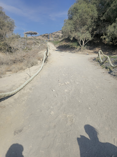 A long sandy beach, much bigger than the one in Matala, so even in high season you will find a place here. The southern part of the beach has sunbeds and umbrellas, a cafe, a parking space and a lifeguard point. The middle section mainly belongs to the FKK. Not such much shade here, but in the FKK part you can find some places under the trees. Before coming to the beach, be sure to check the wind situation today. The beach is an open space, so there are big waves and sometimes, when the wind is very strong, the sand flies so fast that you even feel pain on your skin. It's impossible to sunbathe then - it overwhelms you like a Sphinx in the desert. The sand is different than in Red...