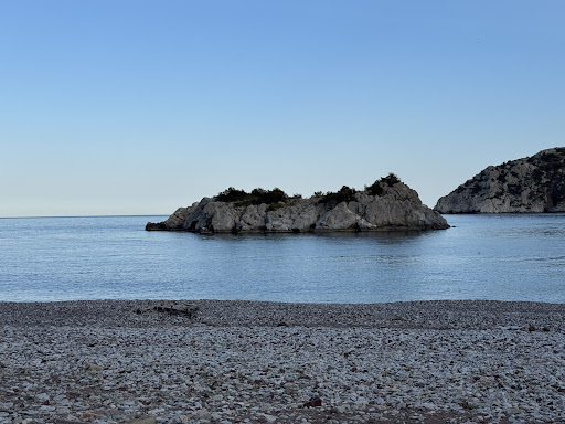 Read moreGetting to this beach is a bit of an adventure. Just follow the blue dots on the rocks. The trail winds through rocky paths surrounded by thorny plants, and yes, ticks are part of the local fauna. Shorts are a very brave choice (read: not recommended), and good shoes are an absolute must if you don’t want your legs to look like mincemeat.