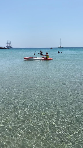 Read moreThis is undoubtedly the best beach in the whole island of Ios! Turquoise, transparent water and a sandy beach surrounded by a barren, wild nature. The most tranquil and enjoyable beach I’ve ever been! Also some water sports going on, if with young family. Paid 10euros for the whole set of sand beds and had lunch at the adjacent tavern at the back ( also very decent prices ). Parking is for free at the back. The only difficulty is getting there … even by car was quite a challenge and should definitely be careful with the silly Google maps directions, which will most probably take you off road ( very dangerous route - make sure you stay on the main road, no matter what Google suggests and avoid driving in the dark ). P.S Pet...