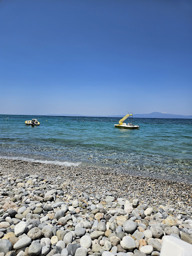 Read moreΠολύ όμορφη και ήσυχη παραλία. Έχει και καποια δέντρα για σκιά. Δίπλα έχει καντίνα με απλώστρες, όπου μπορείς να πάρεις καφέ. Δεν ακουγόταν όμως μουσική (ευτυχώς). Η παραλία έχει βότσαλο έξω, αλλά και μέσα στα πρώτα μέτρα, μετά χώμα. Καθαρά...