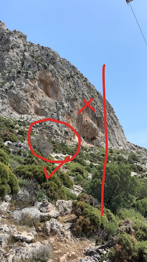 Read more(37.0298590, 26.9582710) I would typically skip going to a cave but thought why not? It was definitely worth the short hike. Creepy vibe at the entrance, had to convince my wife to go in. Climb down a metal ladder, walk down a somewhat slippery path with the help of a climbing rope someone installed, down one more ladder and the cave opens up into a large room. Turn all your lights off for a moment appreciate the beautiful sunlight outside. Make sure you have a couple light sources just to be safe. Park at the “Cave of Skalia” sign and start hiking...