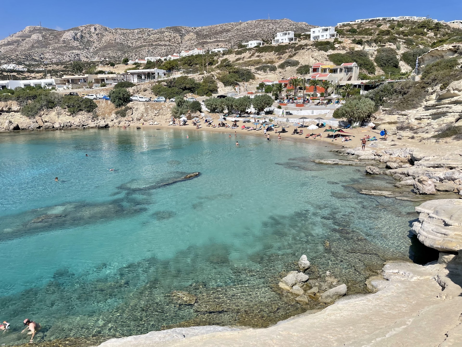Read moreNice small beach with shallow calm water (good for kids). It is also well protected from the wind. I would give it 4 stars if it wasn’t for the umbrellas issue: almost the entire beach extension is covered by umbrellas and sun-beds from the greedy taverna owners (i suppose illegally), whose are also rude to whoever does not want to rent...