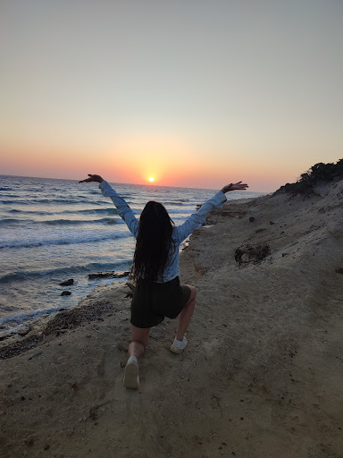 Read moreFantastic beach though stony. The sunset was fantastic and the restaurant was very nice also. €5 for two sun beds and parasol for the day, but there aren’t many so be early if going high season. We were there yesterday and very quiet. In fact there were more people in the restaurant when we had our evening meal watching the sunset than on the beach. The water is crystal clear and felt warmer than say camel beach. Don’t know if that was my imagination or because of the stony bottom reflecting heat and when you get to sandy bit it stays quite shallow for quite a distance out. There was a sandy beach part further to the left as you face the sea but more people there. We where below the restaurant and other than us there was only two other couples, bliss. You can take your car down close to beach so no cliff to climb. Don’t think you could beat this beach for...