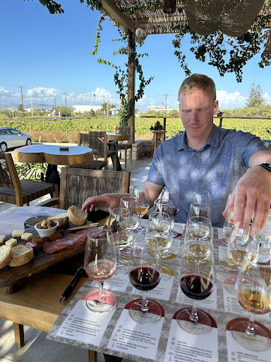 Best wine we tasted in Greece, and a beautiful terrace to enjoy a tasting as the sunsets, lovely vineyard with incredible views of the mountains, free to explore yourself rather than a guided tour. We turned up one afternoon without a booking and were warmly welcomed by the owners and staff, and the adorable Molly! The wine tasting is incredibly good value, only €15 for 8 wine samples (white, rose, red and dessert wine) and a small cheese/meat platter - definitely underselling themselves, we’d happily have paid €25-30 for this experience. A hidden gem that didn’t get too busy and had a fantastic view of the sunset. We spent the whole evening there, enjoyed a bottle of our favourite from the tasting and then bought another to take home. Thank you for a wonderful evening, our favourite...