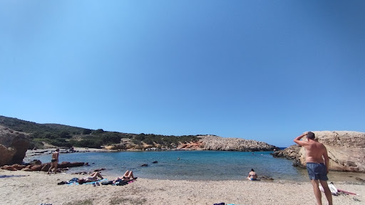 Read moreQuite nice and scenic beach in a little bay protected by rocks, which also doubles as a port for a handful of fishing boats. The water was very tranquil, despite the open sea being a bit rough when I visited. It is also transparent, although the bay is patched more often than not with algae on the bottom. So when you walk on the sea bed it feels a bit slimy and uneven. The beach is quite small and could become a bit busy despite not being attended by the masses. The large part of the beach is occupied by umbrellas and sun beds for rent. There is a secondary cove where you can freely attend. And also another small cove on the back, which is however less protected from the open sea and has a more rocky bed. A restaurant is in the back of the beach, by the side of the road. It however does not offer take away if you want to have a quick bite...