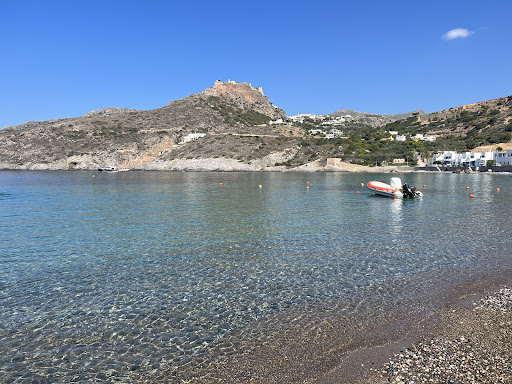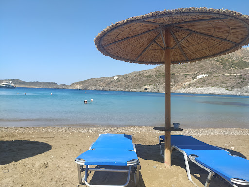 Beautiful beach with clear water and stunning views. ATTENTION FOR THE SUNBEDS!! Don't sit there, they charge you a lot (15euros!!) compared to other places on the island and it doesn't include any service! They will make you pay the set even if you are alone and you need only one. Bring your own umbrella if you need shade or use one of the cafes by the water, definitely don't use...