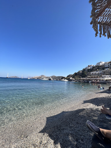 We came from Turgutreis by İDO ferry, the beach was crowded even though it was early in the morning. You don't pay, the sea and the beach are great, there are sun loungers, umbrellas, tables and chairs to sit in the sea. It was quite hot outside, but the sea was cold as nails, just the right consistency for us. If I may say so, cozzzzz😂 The prices of drinks and food are reasonable compared to Bodrum, but the portions are small, we ordered calamari but it was hard, I think they didn't marinate it because it was consumed too much. The beers were hot for this heat, but they brought iced containers and...