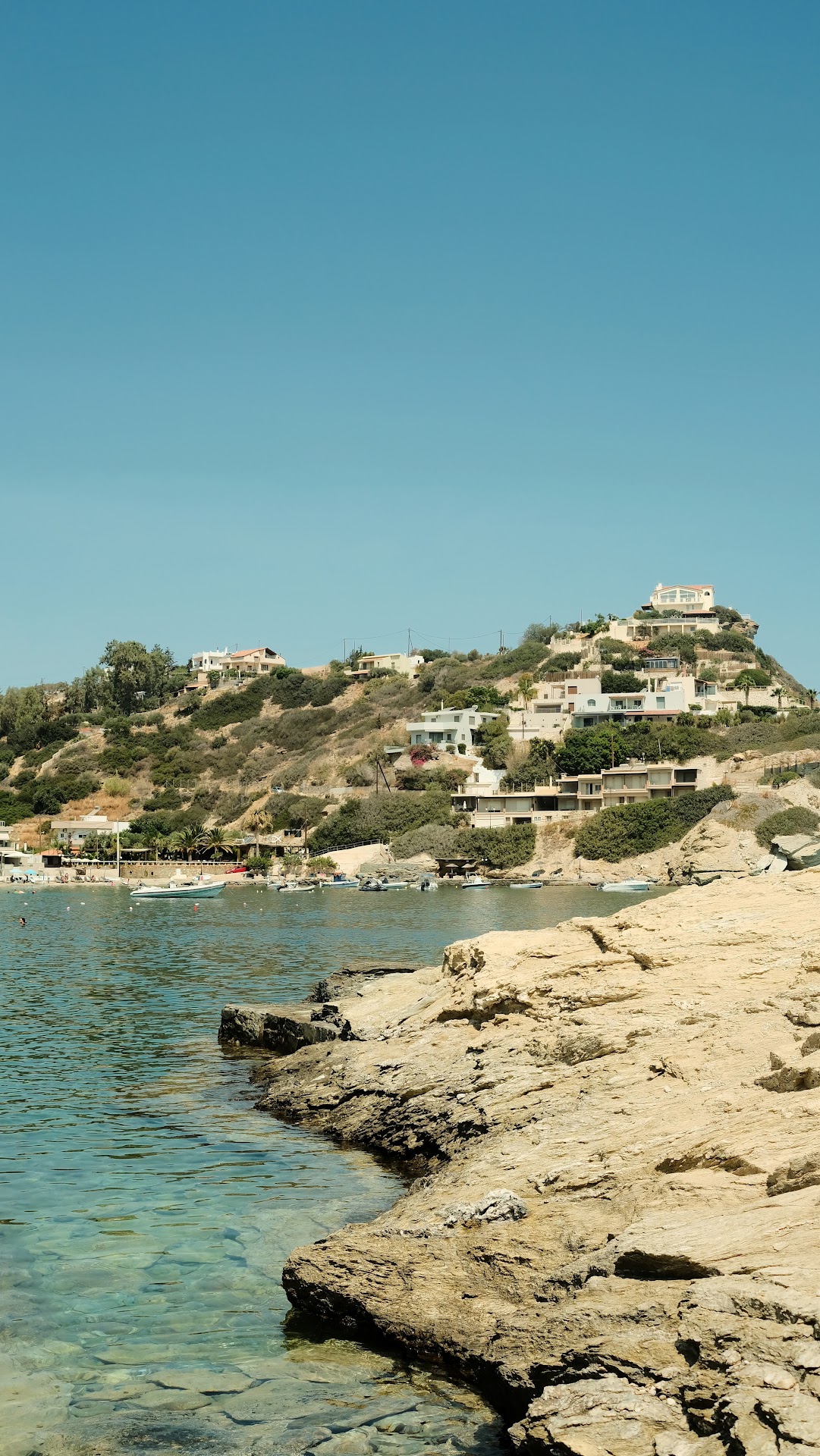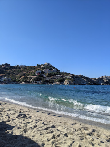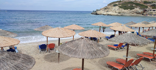 This beach ⛱ was not for me. Looks more as a family beach, a lot of small children and quite noisy. Sunbeds are ok 👌 around 7 eur entire day. Sand quality not good. There are some tavernas next to the beach where you can go and have lunch. The beach has showers and for toilets you go to the bars next to the beach free of charge. Water was clear and you could see small fishes. It has only one supermarket which is situated at the end of the beach. The beach is quite hard to get to as it has very, very abrupt rode to get to. You have to be somehow in good shape....