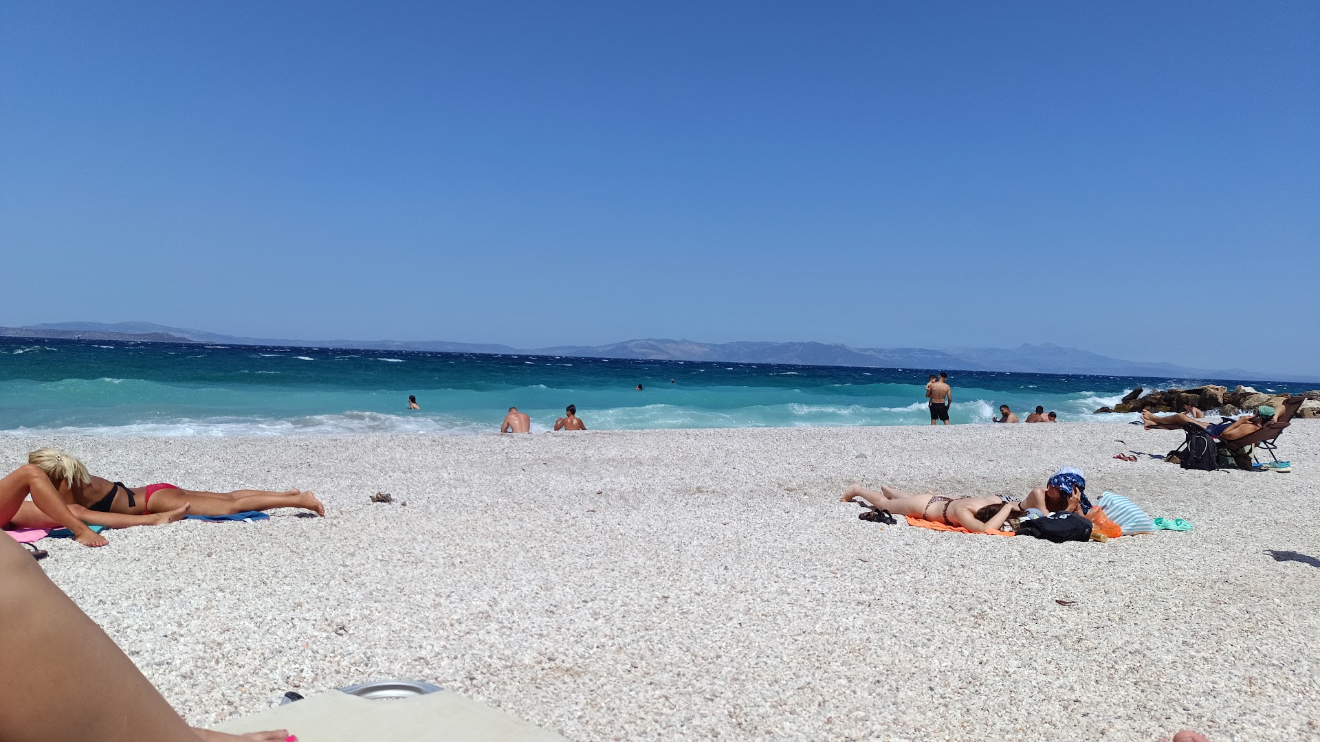 Read moreΠαραλία με μπαράκια και μερικές ψαροταβέρνες. Όμως αδιάφορη άμμο και βρώμικα νερά, λίγο ζεστά με λίγο κύμα και μεσαίου μεγέθους πέτρες και στη συνέχεια αδιάφορη κίτρινη άμμο. Στην αριστερή άκρη της παραλίας έχει αδιάφορη άμμο και καθαρά, καλά νερά με ακόμη πιο λίγο κύμα και μικρές πέτρες, σχετικά βολικές και στη συνέχεια όμορφη λευκή άμμο. Όμως το μπαράκι που υπάρχει εκεί δεν είναι ιδιαίτερα συμπαθής αλλά η διπλανή ταβέρνα είναι...