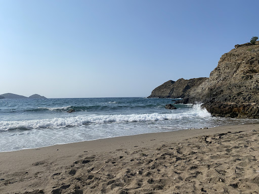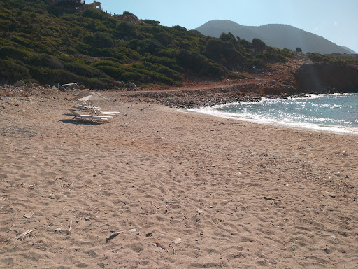 Geheimtipp mit Hippie Atmosphäre, leider etwas schmutzig. Abseits der Straße, an einer Taverne gelegen, geht ein Schotterweg abwärts, unten ein Parkplatz mit Strand-Bar. Ausschließlich Getränke, aber preiswert, der Besitzer sehr nett. Die Liegen am Strand teilweise kaputt, aber erfüllen ihren Zweck. Der Sand/Kies- Strand ist leider recht schmutzig, angespültes Treibgut bleibt liegen, und manche Besucher lassen ihren Müll liegen, obwohl große Mülltonnen am Rand stehen. Schade. Das Wasser ist recht rau, ebenfalls bedingt durch die Strömung, recht viel Treibgut im Wasser. Sehr viele kleine und große Steine im Wasser, ein Betreten ohne Badeschuhe sehr schwierig, unbedingt mitnehmen! Nichts für kleine Kinder, mit der 3-jährigen auf dem Arm ging es, unsere 8-jährige Tochter konnte auch alleine ins Wasser. Aber ist nichts, um die Kinder alleine spielen zu lassen. Dafür ist der Strand auch in der Hochsaison recht leer, Ende August, wo überall Betrieb ist, ist's hier sehr ruhig. Wer also abseits vom Trudel ein paar ruhige Stunden verbringen möchte, ist hier...