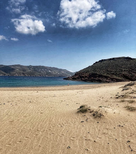 Read moreGo there, it's one of the best beaches in Mykonos. Sandy, clean, a bit distant and the views are amazing. There's even a spot for nude sunbathing at the end of the beach. The water is clear, you can easily see through, or even snorkel a bit. It's clean, well maintained and recommended if you are mobile...