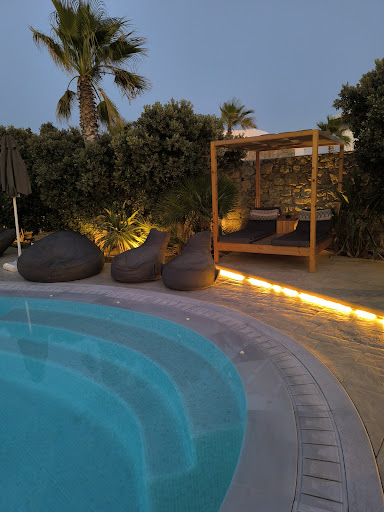 We stayed for 6 nights, typically we stay in larger hotels but thought we would try something different ||We weren’t disappointed, the rooms are a good size, studio style, comfortable, cleaned daily including new towels and there’s even a jacuzzi!||The airport is very close by, most of the Island’s beach clubs are only a few KM and Mykonos town / Old Port less than 10 mins in a cab.||The way the rooms are set up is great just like having your own little villa. They have direct access to the pool and a seating area outside to relax. There are plenty of sun beds, double day beds & loungers. The bar is open from around 9am to 10.30pm and has a good selection of top shelf drinks and home cooked food by the proprietor Katerina.||A massive thank you to Alexandre who not only looked after our every need at the venue and served at the bar every day, she also organised a private cruise, numerous taxi’s, beach clubs and restaurants for us.||The place has a real family feel, a delightful visit, thank you so much we will...