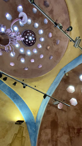 During our visit, there was an exhibition by a local painter. The paintings placed beside the marble basins, the violet-colored chandeliers, and the series of arched doorways created a magical and mysterious atmosphere—like something out of a fairytale. It truly felt like a wish granted by a genie from Aladdin’s lamp.
