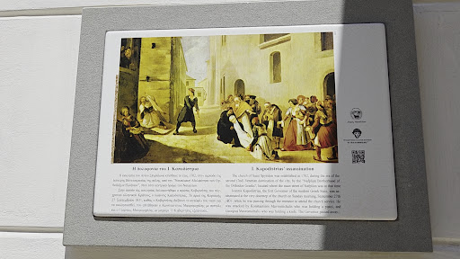 This church has an important historical significance for the Greeks. It was there that on September 27th, 1831, the first governor of the newly-established Greek State, Ioannis Kapodistrias, was assassinated by his political opponents, some men from the Mavrokordatos family, a wealthy and strong family that time in Greece who had contributed a lot in the Greek War of Independence.