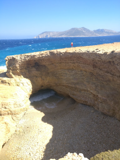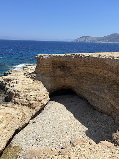 You can get there either by boat from the port to Pori and then walk 10 minutes, or by walking 70 minutes / 5.0 km from the port via the coastal road, or by walking 47 minutes / 3.4 km from the port through the internal road of the island. On this beach you will not swim, but you will see a beautiful landscape that is a natural cave that practically pierces the coast. It got its name (gala means milk in Greek) from the milky color that the water acquires. It is formed by a passage in the rocks, through which the sea enters. After diving into this small natural pool, you will swim for a few minutes, pass under a rock and find yourself in the ocean. The water suddenly acquires a different temperature, the wind is stronger. You will have actually bathed in...