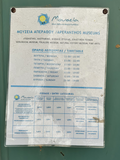 With a 3 euro ticket you can visit four museums here in Apiranthos: natural history, folklore, geological, visual arts. These are very small museums, but anyway quite interesting and very well explained by the people who manage them.