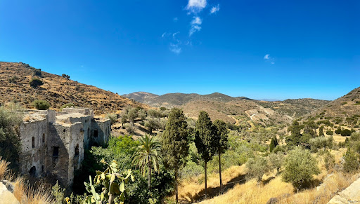 Kalamitsia Monastery, also known as the Jesuit Palace, is a hidden gem tucked away in the hills of Naxos – but be prepared for an adventure getting there! You’ll need to navigate a winding dirt road with steep sides, and once you’re on it, turning around isn’t really an option. My advice? Just keep going, because at the bottom, you’ll find a spot to turn around. The journey is half the fun, especially with the beautiful olive trees and low hills surrounding you.