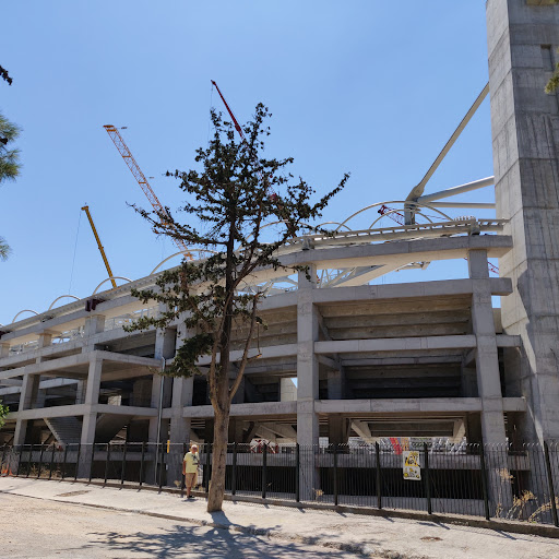 It is a beautiful and calm place, both for families and couples. I usually go bicycling with a few friends in its least visited side, which is only consisted of dirt, trees, benches and a tennis court. In the other side of the park you can find the large fountain/lake which has a small island in the middle. The drawback is that we don't have access to the island and the lake is sometimes empty. But there's more! (Structures I mean). If you walk down the straight road you will find some exercise gear and a few piles of gravel due to constructions. In the end of the road you'll see the "AEK" soccer field which is still in construction and may be...