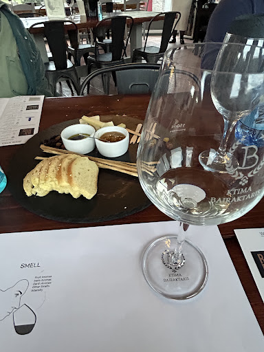 This winery was an EXCELLENT choice! Our family visited during the winter season and had a LOVELY tour with Mandi. I don’t think I’ve ever been more informed about the wine process in my life! We got to hear about the individual machines, the different wine processes, and the materials used (cork vs silicon and oak barrels and more!) so we really understood what we were drinking. We did the tour and the wine tasting with four, HIGHLY RECOMMEND, and we got to drink the Monolithos White and Rose, Ktima Red, and 3/.13. Mandi gave beautiful descriptions of each wine, the notes we should smell/taste, and taught us about the tears (in the US we call them legs!) in the wine glass and how it indicates age! We also got to enjoy a DELICIOUS plate of cheeses, fruits, and bread to go with our tasting. We had a wonderful conversation and evening, and we bought several bottles after. Since we went in the winter, we weee the only group there, but it honestly made things more intimate/fun. 10/10 would come back, and would love to see it in the summer when they’re pressing...