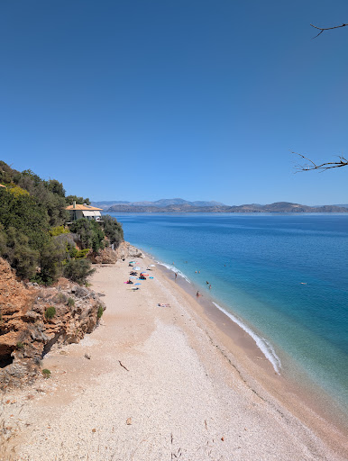 Definitely the best and most beautiful beach of northern east Peloponnes, quickly to reach from Nafplio by car. Not too many shadow places, no umbrellas, no shower, no beach service or bar, just little stones and crystal clear turquoise water. The water is usually very calm in the morning, larger waves in the afternoon. The access happens through a not too stable looking...
