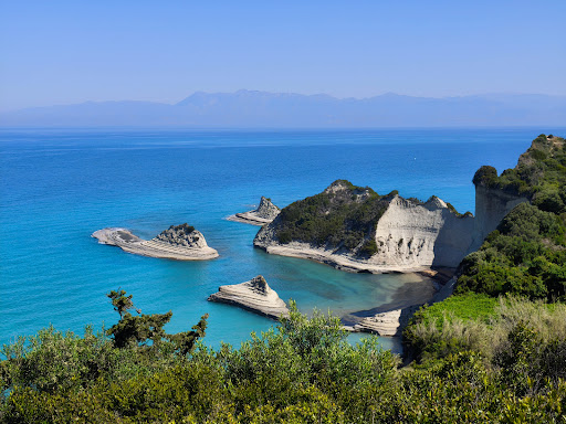 Read moreA really nice beach with cliffs sculpted by the sea. Getting to the beach is only by walking, you have to leave the car up at the small parking lot or along the road. The road as most of the roads in Corfu is narrow and if there are cars parked along one side it is impossible for two cars to pass by so be aware of that. Once you leave the parking lot, you can just follow one of the two ways down to the Cape Drastis beach. The walk is very pleasant, but for some people it may be strenuous on the way back (about 50m vertical gain). It takes about 10-15 minutes to get to the beach. There are lots of places to take photos of the cliffs and beaches from high up. The cliffs are quite high so if you wander around just be careful because they end quite unexpectedly in some places. Views are great, the beach is very small but you can get a boat to nearby beaches and cliffs and to Sidari. We came here during quite windy conditions and the waves were high so it was unsafe to enter the water but during nice weather conditions this beach can probably get very crowded. Definitely worth visiting, even just to see the cliffs...