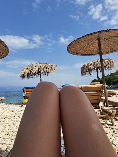 Read moreLovely beach with crystal clear water. For 2 beds and an umbrella its €20 euros for the back 2 rows, €25 for the front row and €45 for a cabana. Expensive but it's so rocky we had to take them! The food in the restaurant is OK and all the...