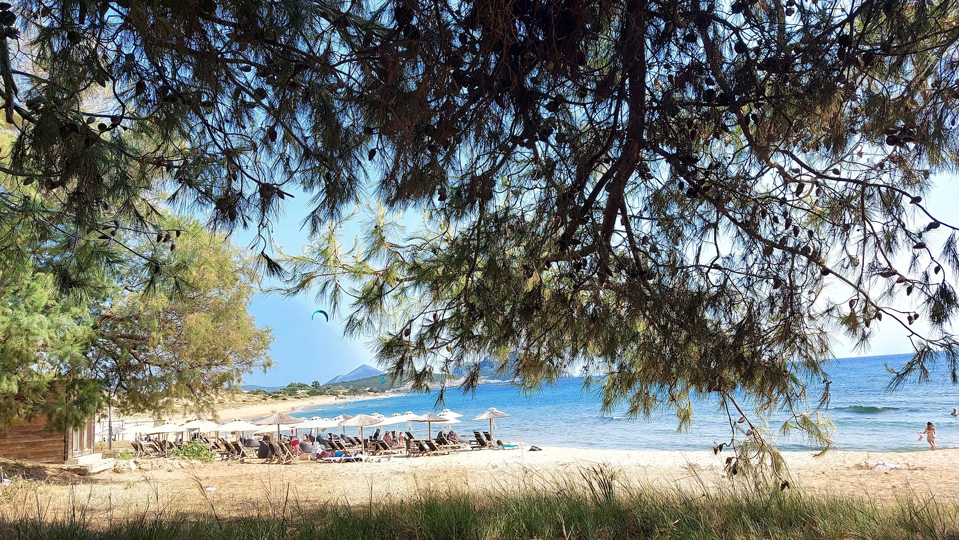 Read moreGreat beach with the finest sand, and crystal waters. Quite windy, but bearable because of the high temperatures in july. There are two bars , in kookoo...sth you have to pay for the sunbeds 6 euro per set, and any drinks are on top of this. There is plenty of space to put your own umbrella, and you can also lie below the trees in beautiful shade. All in all,...