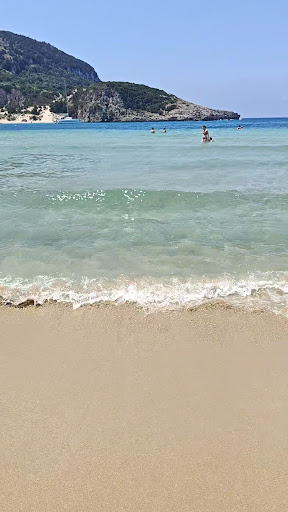Today we visited Voidokilia beach. We arrived at around 10:00 a.m. and there were plenty of free parking spaces as well as a free choice of places on the beach. But there are also plenty of free parking spaces later in the day. Incidentally, the approach is easy to manage. The water is very shallow right at the entrance and there are hardly any waves. Waves are more likely in the middle to the right. If you want to have some peace and quiet, you should walk all the way around to the right and position yourself at the end. This also has the advantage that the entrance to the cave is close by where you can Take great Photos. If you lie down in the middle, you should walk up the dunes at the back, from where you can take great panoramic photos. Interestingly, the water is much colder than on other beaches we visited the days before. However, I found it very pleasant in the heat and it is crystal clear and simply heavenly to swim there and let yourself drift with the waves. Every now and then a stylish yacht comes by. There are no opportunities to buy anything directly on the beach and no shady spots, so be sure to bring a parasol, drinks and snacks. If you have forgotten your parasol or the wind is too strong, you can find a shady spot under the trees a few meters behind the dunes. Conclusion: beautiful beach, busy but not crowded, great but cold water, a must-visit not only...