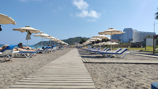 Read moreVery nice beach. You can get two beds and a shade for 10 Euro for a full day. Plenty of space between beds. Note that the beach might be full before noon. There is an optional to just sit on the beach. The bach consist of deck in the aisle and tiny pebbles. The beach close to the water consist of larger pebbles and there is a relatively steep entrance to the water so after fee steps there is sand in the bottom and about 1.5 m deep. Clean bathrooms are also available...