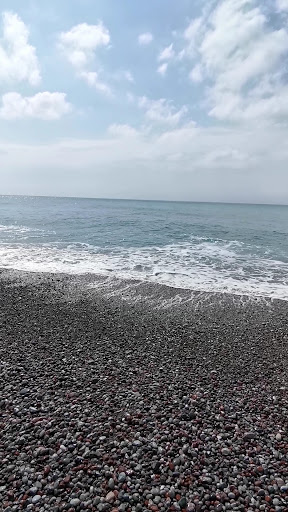 Read moreEin Kieselstrand der mit Badeschuhen einfach perfekt ist! Lauwarmes Meer, Glasklar, perfekt auch zum schnorcheln. Es geht ziemlich schnell ins tiefe Wasser daher ist hier aufzupassen mit kleinem Kindern! Am Strand befinden sich Liegen mit Schirmen ab und an kommt auch ein Kellner vom oben liegenden Restaurant und bedient am Meer! Zu erwähnen sei noch dass es...
