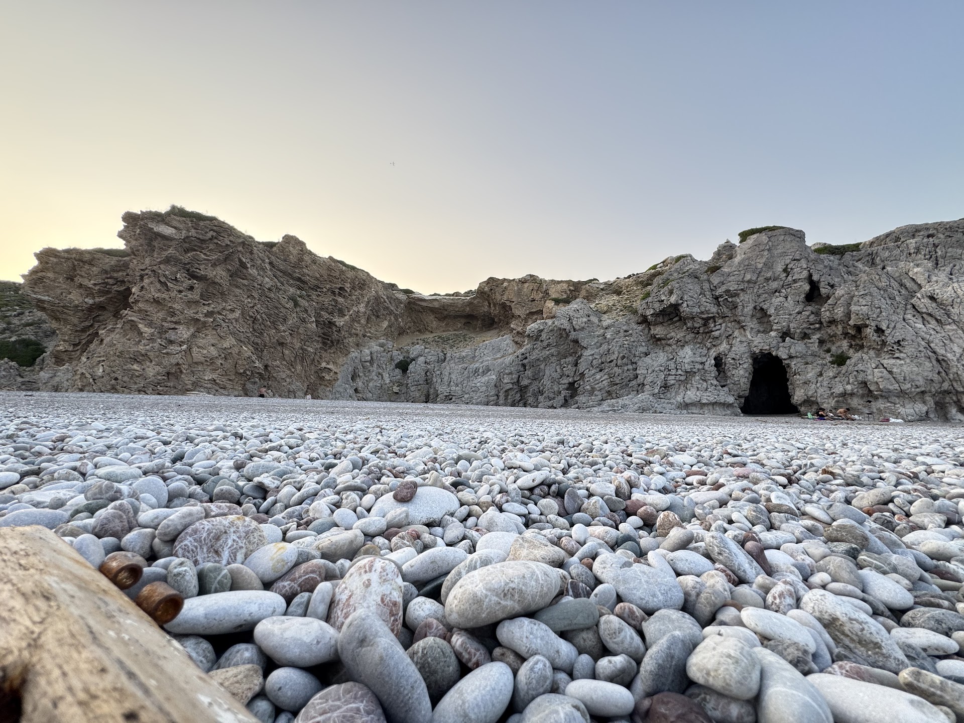 This beach is unique in that it’s covered in smooth pebbles instead of sand, which adds to its charm but does mean you’ll want to come prepared. Definitely bring sandals or water shoes, as walking barefoot can be uncomfortable. Once you're set up, it's incredibly relaxing to lie back, take in the view, and enjoy the gentle sound of the waves.