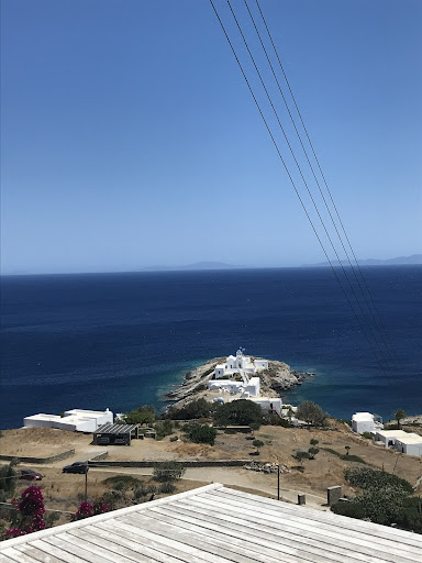 A perfect Sifnos Beach with nice sand, trees for the shade, you can admire three churches, there are two tavernas for drinks or food and a specialty coffee place nearby. The sun goes over the hill at about 7:30...