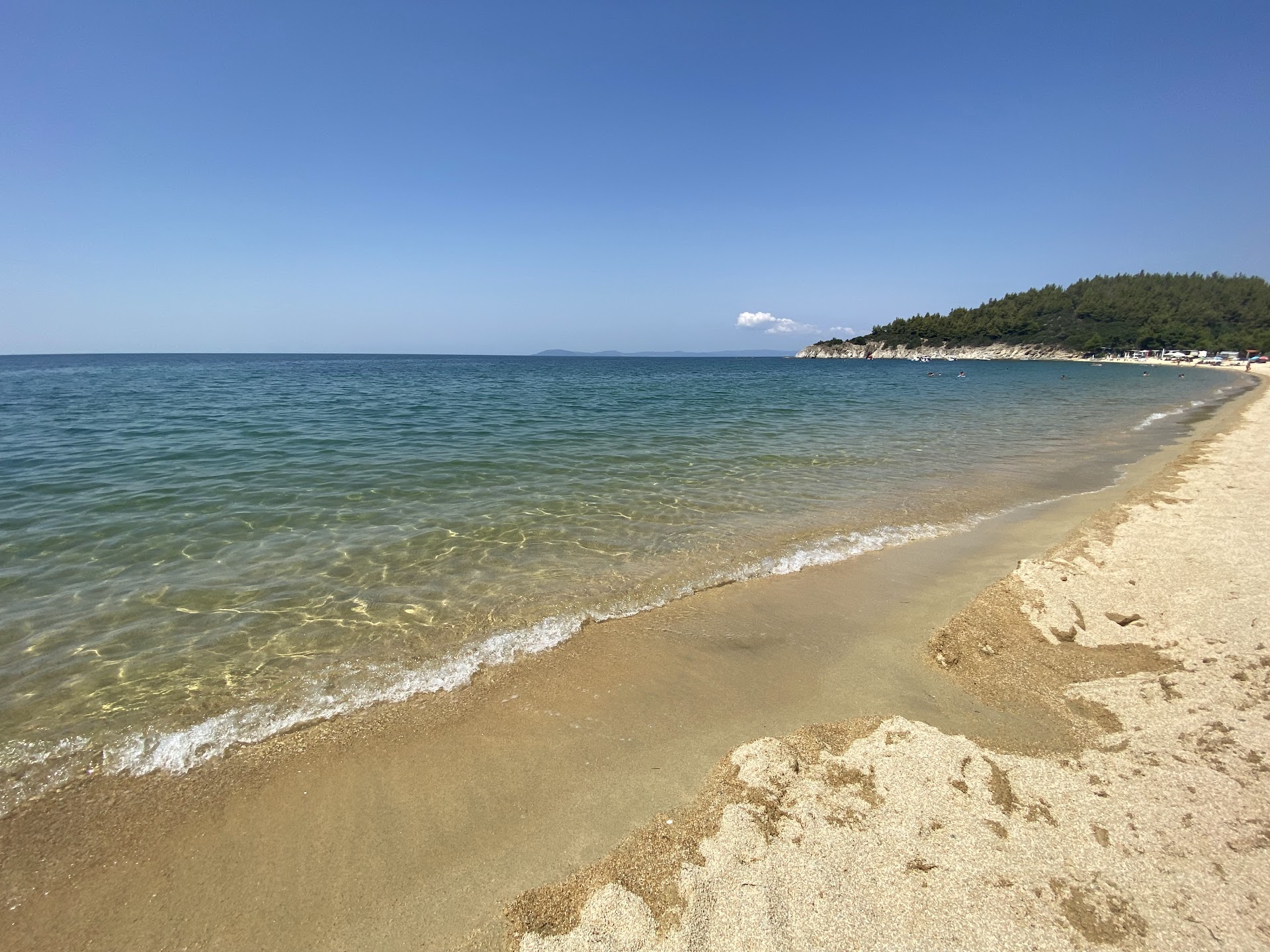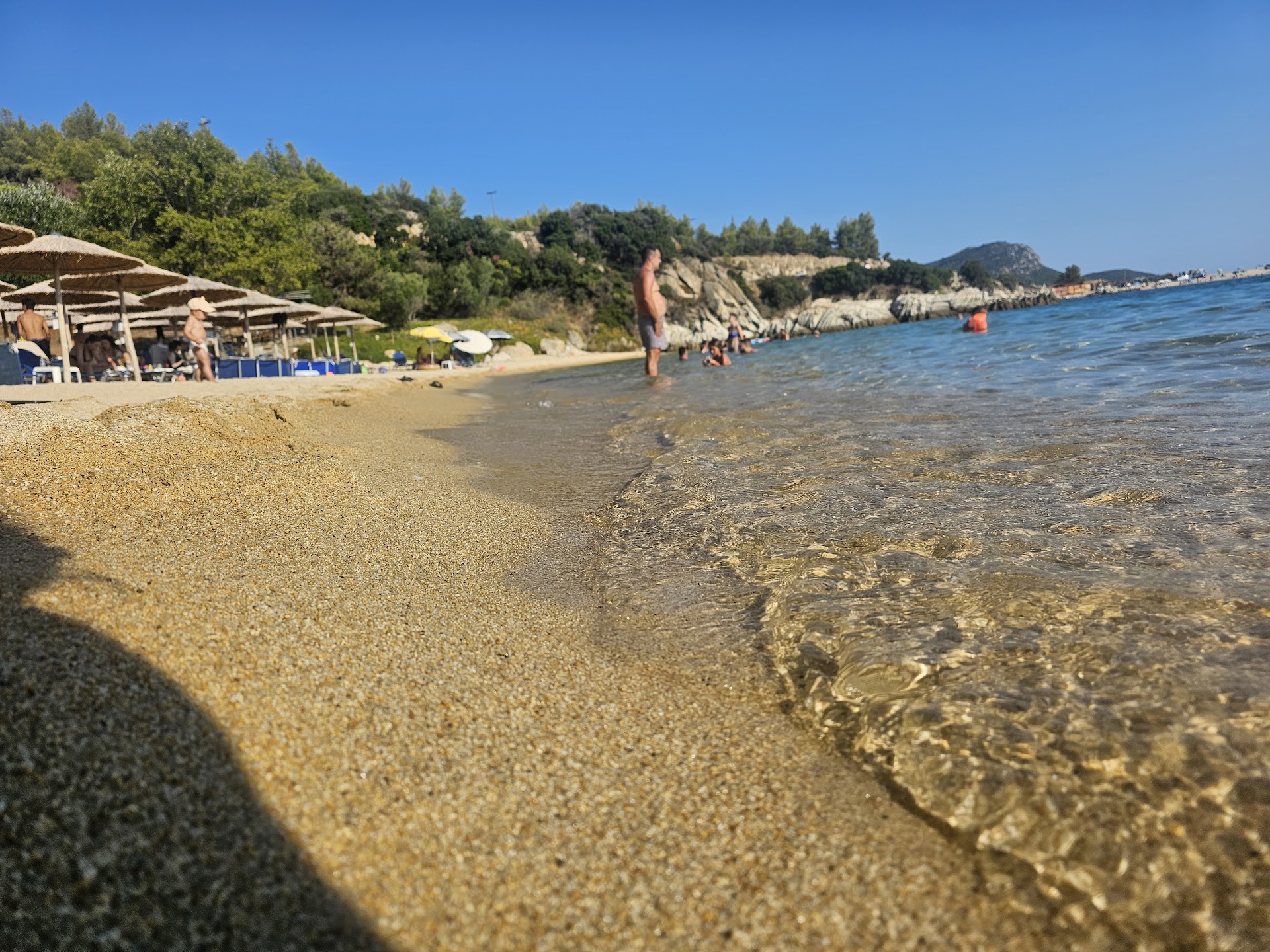 The beach is quiet, not so crowded. The water is crystal clear and it gets deep after some meters. It is appropriate for families with kids. There are several beach bars on the beach. We were at Litus beach bar. They offer free parking for clients and free sun beds, but you have compulsory consumption of at least 7 euro which is perfect. Espresso is very good and costs only 2,50 euro. Very fresh and tasty smoothies - at the price of 5 euro you get cool and fresh fruit smoothie (the menu offers 7 versions). Close to the beach bar (like 1 minute close) is a taverna called Akrogiali - very tasty food. Vegetables for salad are very fresh, we tasted also kalamari, stuffed peppers, green bean, tarama - everything is good though we were skeptical in the beginning. Prices are normal. Well, toilet is a different thing and don’t expect much. Overall, nice beach with good service, good prices and free parking, but it’s not “something wow” and for sure there are beaches on Sithonia which deserve...