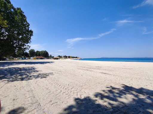 Read more2022 review. Nice blue flag beach. It is bery big, with umbrellas and chairs for free(the only condition is to buy something from the bar)- food or drinks. After 5pm there is happy hour with cocktails at 5€. There was a DJ playing a good variety of music at a loud but quite pleasant volume and audio quality. The sand is not very fine but nice. The water is clear but it gets deep very near the shore (a downside for kids) There are small, white fish near the edge of the water, they even come to your feet(sometimes if you stand still the peck your feet) There is a lifeguard, thrash cans, and turkish bath. Behind the beach there is a huge camp where you can stay with...