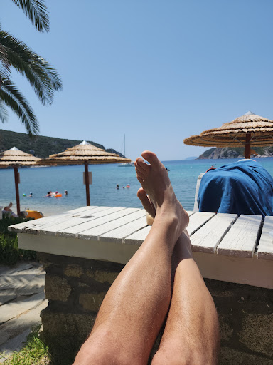 Read moreAverage beach. The beach is long, so the quality is different depending on the part you chose. There is fine sand on the beach itself, and when you enter the sea there may be sand, grass or pebbles, so it is not pleasant everywhere for entering the sea. After the belt with grass and pebbles, there is a part with a sandy bottom and relatively shallow in various places, so you can stand. There are no special facilities on the beach. There are sunbeds for guests outside the guesthouses and small hotels. The big advantages of this Koufo Bay beach are the beautiful view of the bay and the sea. Even when it's windy, this bay offers calm water to enjoy. If you are not in one of the accommodations, there is no toilet, shower, or changing room. Parking is on the street from the beach...