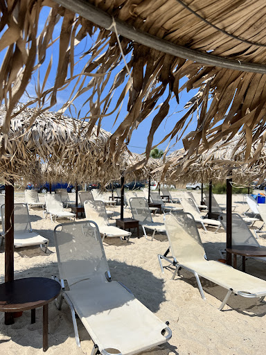 The bar next to LA Luna (with the white cushions on the sunbeds) - Service is a bit slow. The bar is on the other side of the road, so no music, which was great for us. July 2023 prices for the beach umbrellas are 30 euros for first line, 20 euros for second line. These are all paid as credit for consummation. The umbrella will be reserved for you for the whole day. Very comfortable and luxurious sunbeds with white cushions. We prefer the calm, no music, so we'll be back here for the first line sunbeds.