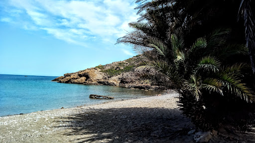 Read moreA nice clean secluded beach (free parking and a short walk around the base of the Minoan Ruins). The beach is a nice mix of sand and fine gravel, perfect for laying down a blanket of towel. It is best to wear water shoes here for access to the water - there are slippery stones in the near shore area. It is a nice place to snorkel and see a variety of small fish around the larger rooks and crevices. There are some natural palms trees...