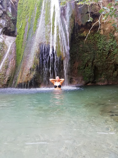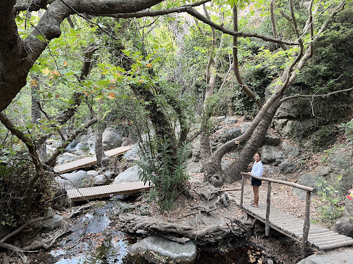 First of all don't park at the top of the main road , go down the track to the starting point at the bridge , the road is narrow but passable I have drove down worse roads on Crete, the road track is about a mile long so your cutting out a fair walk for nothing and it's steep on the way back up , stating from the bridge make sure you go under not over but it is clearly marked with red and yellow marking every 50 metres, the first 20 minutes is fairly easy just a small stream with stepping stones to negotiate and a small track, it is a bit damp in places but I did it with no problems in trainers , I would not recommend flip flops , as you come to 2 old houses it's starts getting a bit trickier with a little bit of rock climbing and further distances to jump across the streams , some places you will have to slide on to your bum to slide down the rocks , there is many beautiful places with nature and mini waterfalls and deep fresh water pools , there are metal staircases on the highest points to help your decent , after the steps there are a few challenging large boulders you need to take you time getting over , continue like this until you reach the wooden balcony with the steep stairway leading you down to the waterfall , you can see the waterfall from the wooden staircase , at the bottom of the stairs it's about a minute walk to the magnificent waterfall , it's beautiful to look at , there is a picnic bench there for you to enjoy a snack , we got to waterfall about 11am there were about 6 people there sat at the bench resting , there is a fresh water pool under the cascading waterfall , my wife went straight into the pool to cool down under the waterfall and she did see a eel about 4ft long off to the right hand side of the pool but it did not attemot to go any where near her and stayed under the rock , apparently there are 2 in there , I got in shortjy after stayed in the pool for a good 10 mins and had no problems , we also did the extra 30 mins extra hike to the beach , it's not as challenging but there are some tricky bits however I'm not going to judge as we bumped into alot of older people doing to beach to the waterfall route , the beach is just rocks with a shaded tree picnic area , and there is also drinking water , we did not swim in the sea on this day as it were quite rough , we also had the beach to ourselves , it were nice to reach the waterfall for a second time on our way back up from the beach to have a final soak and cool down before the return trip back to the car , it were 28 degrees on the day we did it , there are shaded areas on the hike but when it opens up you do feel the heat , I cooled down in rock pools on the way back up , just take plevty of water and you will have a fantastic time , I would recommend this gorge it's amazing , it took us 1 hr 20 mins from the main road to the waterfall , the whole day took us 5.5 hrs but it's worth it , you can do it quicker by stoping at the waterfall and not going...