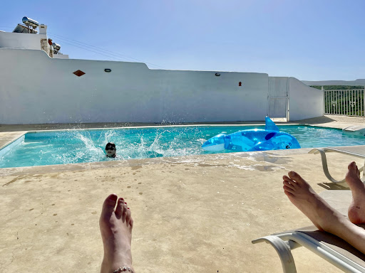 It’s the perfect spot for peaceful, quality time by the sea. Its a good choice when there is a medium North / North West wind, for the water remain relatively calm, as opposed to other nearby beaches that get kinda wavy.
