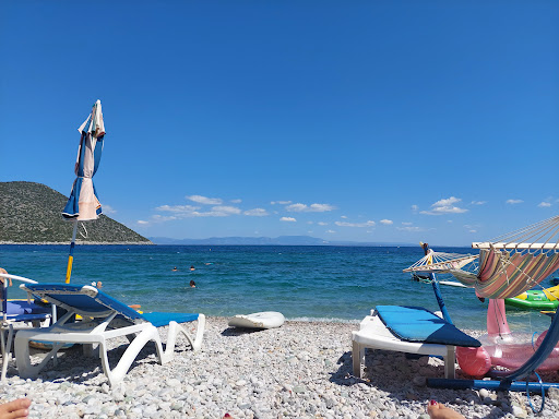 Belle plage avec des chaises longues et des hamacs bon marchés. Les enfants trouveront beaucoup à jouer ici. Canoës et stand up paddles peuvent être utilisés gratuitement. Vous pouvez vous faire livrer des boissons et de la nourriture sans frais supplémentaires. Stamatis, le manager des chaises longues, vous aidera et se fera un plaisir de traduire.
