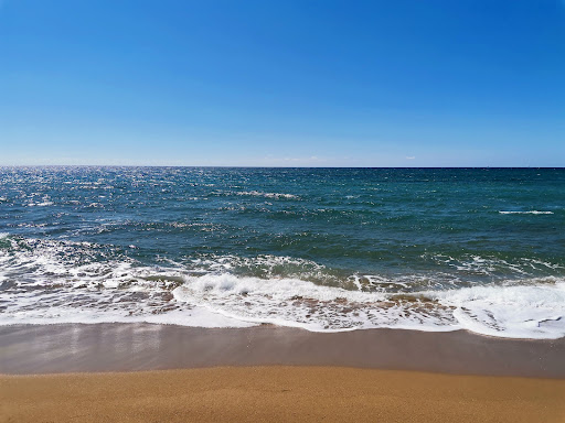 Read moreA very beautiful sandy beach! It was a relaxing day for us. It can be really noisy depending on the side you are on. We stayed where there are no bars, so no noise and I was able to have a very soothing nap hahaha sound waves and all. There is a water park for the children. They have a shower and charged us 10⏠for the sunbeds and umbrella. We also had a very cute visitor, the doggy came from a house up the street to have his morning swim and took a nap next to us! So cute! I almost took him home hahaha We had an awesome lunch at Karma, i had a mexican plate and my husband had a swordfish and God, it was so good! I definitely recommend it!! We were able to park easily but we do arrive early at the beaches, if you come too late, you might not...