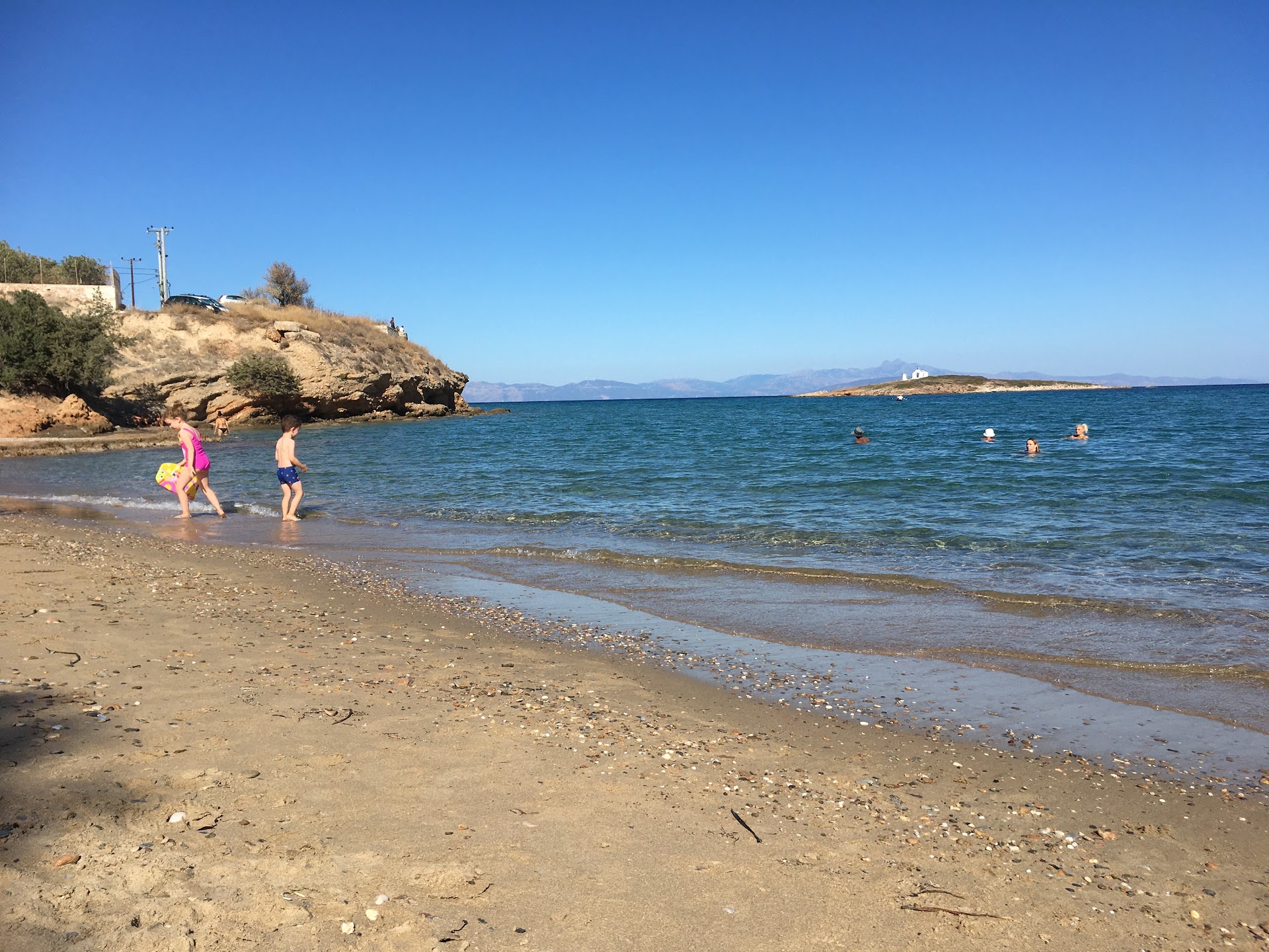 Read moreΗ παραλία είναι μόνο με άμμο και χωρίζεται σε δυο μέρη. Το πρώτο είναι το μικρότερο και αυτό που βλέπει κανείς φθάνοντας από τον δρόμο πίσω της. Στο αριστερό της τμήμα υπάρχουν 2-3 μικροί κόλποι κάπως απόμεροι, χωρίς ίχνος φυσικά σκιάς όπως και σε όλο το υπόλοιπο τμήμα, μέχρι το κομμάτι μπροστά από το ξενοδοχείο όπου υπάρχουν ομπρέλες. Είναι αρκετά καθαρή, ακόμη και τις ημέρες αιχμής. Στα συν ότι είναι αρκετά καλυμένη στους βοριάδες, όμως όταν φυσήξει λόγω του ότι δεν έχει βότσαλα αλλά άμμο (θα) προκύπτει μεγάλο πρόβλημα. Επίσης έχει ωραία θέα και αξίζει μια επίσκεψη κυρίως τις απογευματινές-βραδυνές ώρες. Το τελευταίο κομμάτι πρόσβασης είναι χωματόδρομος με αρκετή κλίση και αναλόγως την εποχή και το τι έχει προηγηθεί από καιρικά φαινόμενα (ακόμη και μήνες πριν)επηρεάζεται η κατάσταση του δρόμου. Αυτοκίνητα με χαμηλό ύψος ανάρτησης δύσκολα δεν θα βρούνε (στις πέτρες) και καλύτερα να παρκάρουν στο ασφάλτινο κομμάτι πριν αρχίσει η...
