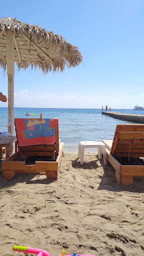 The beach seemed to be a nice place to swim in, there are showers, bathrooms, changing cabins, greek tavernas and beach bars.