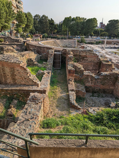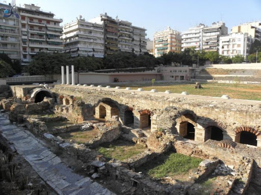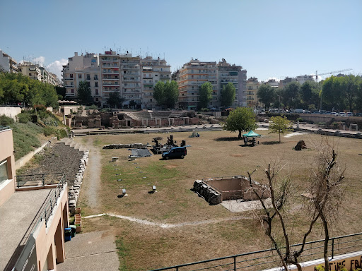 The Roman Forum of Thessaloniki is the ancient Roman-era forum (or Agora) of the city, located at the upper side of Aristotelous Square. It is a large two-terraced forum[1] featuring two-storey stoas, dug up by accident in the 1960s. The forum complex also boasts two Roman baths,[2] one of which has been excavated while the other is buried underneath the city, and a small theater which was also used for gladiatorial games. Although the initial complex was not built in Roman times, it was largely refurbished in the 2nd century.[2] It is believed that the forum and the theater continued to be used until at least the 6th century.[3] In the area of the forum, in the 60s it was planned to be built the central City's Court (in Greek: Δικαστήρια), but after the discovery the project was stopped. This intension still survives in the name of the nearby "Dikastirion (Ancient...
