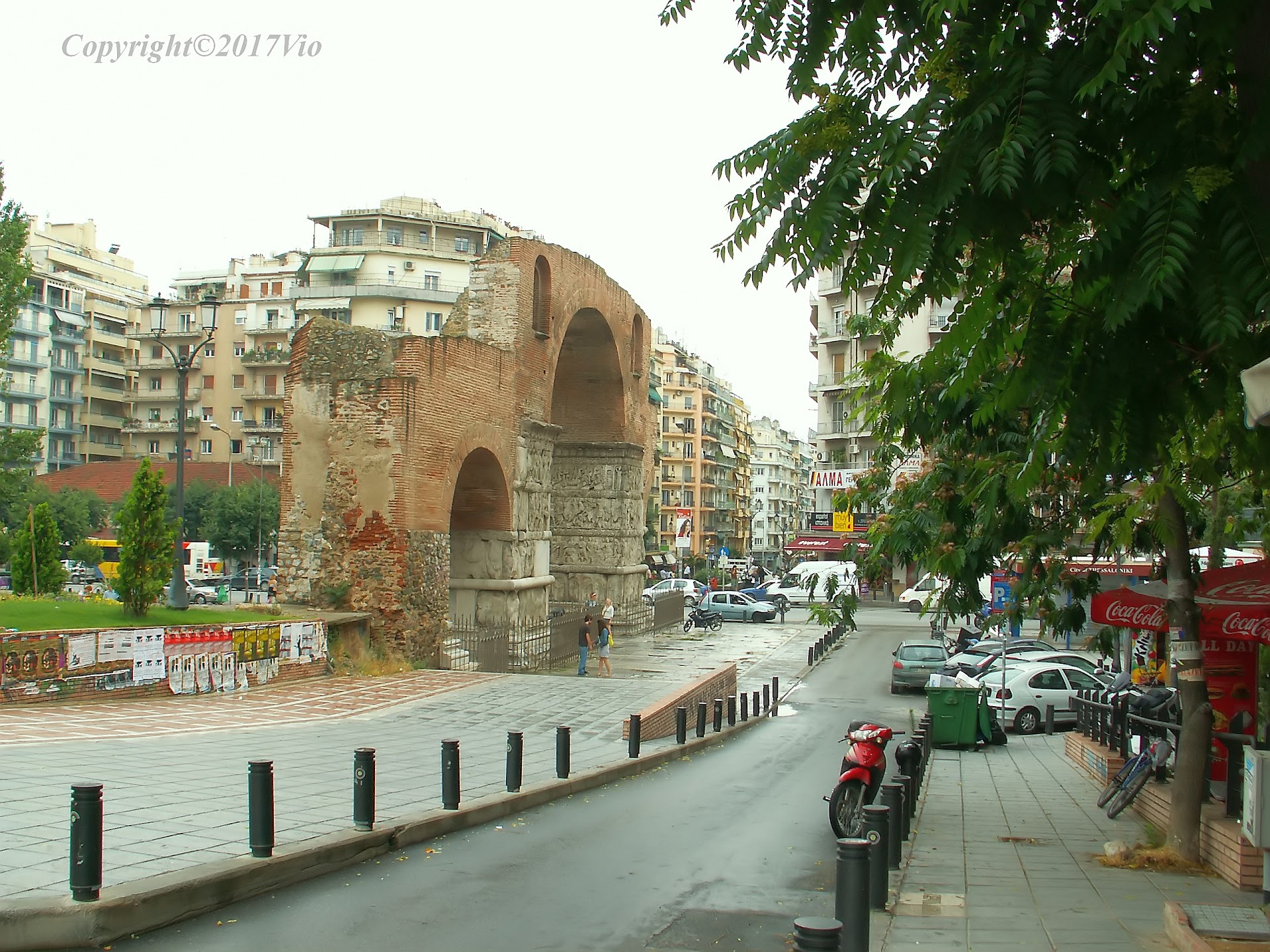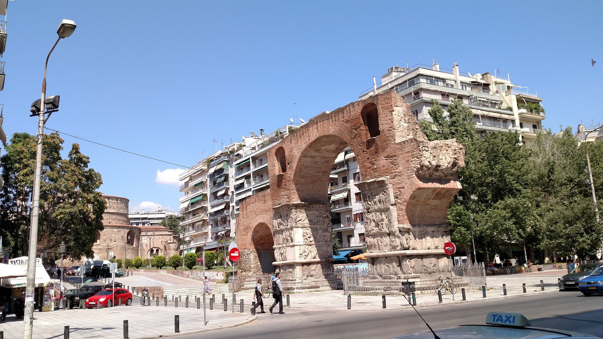 Situated in the center of the city, on the famous Egnatia Street (successor of the famous Via Egnatia, which connected Constantinople with Durres, on the Adriatic coast, and then continues to Rome with the more famous Via Appia; the original Egnatia road can still be seen in Thessaloniki, in the Neapolis neighborhood), this Arch deserves special attention not only from the historians but also from the tourists. Built through the years 300 after Christ to celebrate the victory of Emperor Galerius on the Persians, the Arch itself is not a special construction, meeting the standards of the time. Important is that the battle scenes on the Arch reveal the "Dacians, my compatriots," who helped him in winning the victory. But even more important is to know about Galerius that he is the author of the 311 Edict of Tolerance, through which Christianity was recognized and officialized, to know that he had insistently affirmed his Dacian origin, to know that he wanted to change the name of the Roman Empire into The Dacian Empire, treating the Romans with the severity with which they had treated the Dacians after the conquest, to know that he wanted to formalize the dacian language as an official language of the empire. Situat în centrul orașului, pe celebra stradă Egnatia (urmașa nu mai puțin celebrei căi de acces numită Via Egnatia, care unea Constantinopolul cu Durres, pe țărmul Mării Adriatice, și, apoi, continua spre Roma cu și mai celebra Via Appia; un fragment al drumului original mai poate fi văzut și acum în Salonic, în cartierul Neapolis), acest arc merită o atenție deosebită nu doar din partea istoricilor, ci și din partea turiștilor. Ridicat prin anii 300 după Cristos pentru celebrarea victoriei împăratului Galerius asupra perșilor, arcul în sine nu este o construcție deosebită, încadrându-se în standardele vremii. Importantă este redarea în scenele de luptă de pe Arc a "dacilor, compatrioții mei", care l-au ajutat în dobândirea victoriei. Dar și mai important este să știm despre Galerius că el este autorul Edictului de toleranță din 311, prin care era recunoscut și oficializat creștinismul, să știm că și-a afirmat cu insistență originea dacică, să știm că a vrut să schimbe numele Imperiului Roman în Imperiul Dacic, tratându-i pe romani cu severitatea cu care aceștia îi trataseră pe daci după cucerire, să știm că a vrut să oficializeze limba dacă drept limbă oficială...