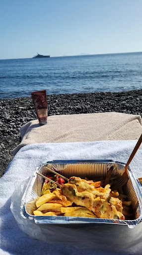 Read moreI don’t want to spoil this spot but it was the least crowded beach to go to and was very beautiful. It has the best noises as the water goes out and all the volcanic rocks crack against each other. Make sure to go to the family tavern and not the trendy bar if you want reasonable prices. You can use the beach chairs if you are a customer at both, but the family...